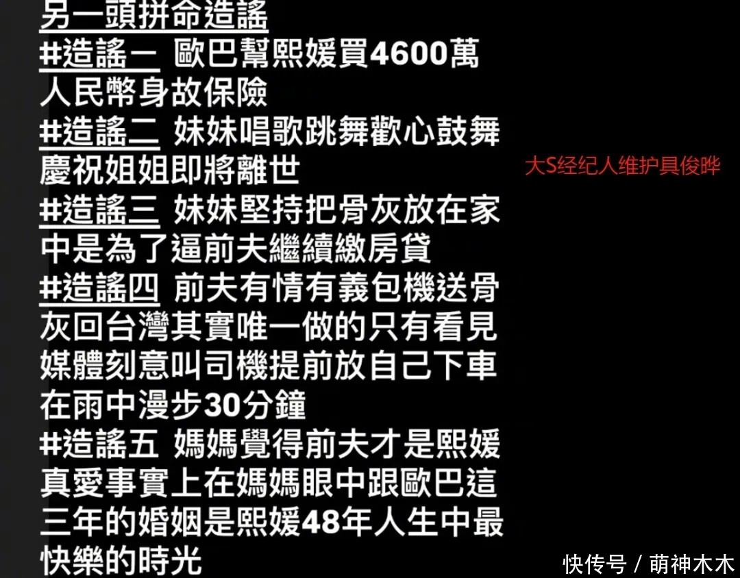 只能说汪小菲的同盟力量也很强大,除了亲妈之外,还有好友也出来迎战了!好友回怼具俊晔到底是谁没把大S照顾好,汪小菲在婚姻存续期间为了这个家来来回回飞了数千次,对前妻情深义重,曾经深爱的女人去世了,他根本不可能演戏装痛苦,也不可能有心思制造假新闻。